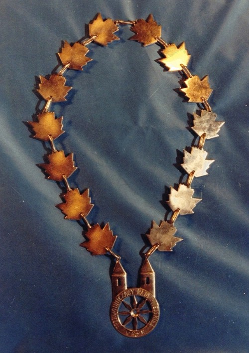 Łańcuch okolicznościowy zawierający wizerunek herbu miasta - Łańcuch okolicznościowy zawierający wizerunek herbu miasta używa Przewodniczący Rady Miejskiej podczas obrad Rady Miejskiej.
