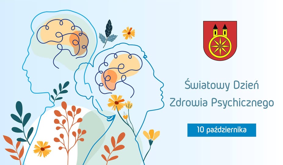 Plansza promująca Światowy Dzień Zdrowia Psychicznego przedstawia kontury mężczyzny i kobiety odwróconych do siebie plecami. Po prawej stronie napis Światowy Dzień Zdrowia Psychicznego i herb Koła