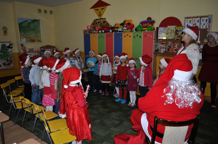 Wszystkie dzieci, które tego dnia przybyły do przedszkola witane były słodyczami. Podczas oczekiwania na Mikołaja, dzieci ubrane w mikołajkowe czapki, zgromadziły się na przedszkolnym holu. Kiedy miły gość zawitał w progi przedszkola radości nie było końca. Najpierw Mikołaj przywitał się z dziećmi, a następnie zatańczył. Wszystkie przedszkolaki brały udział w „Quizie o Świętym Mikołaju” i chętnie odpowiadały na zadawane pytania.
