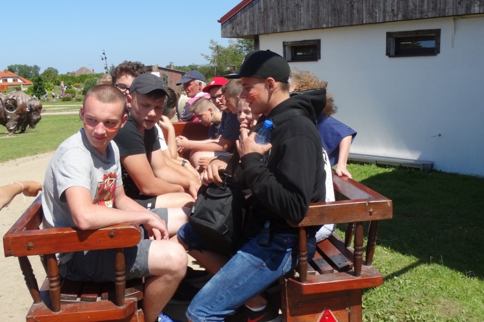 Mając do dyspozycji autokar wycieczkowy, młodzi turyści ruszali również poza miejsce zakwaterowania. W drugim dniu pobytu udali się na poligon do Chełma Gryfickiego, aby przeżyć tam militarną przygodę. W trakcie 4-godzinnych zajęć przeszli wojskowe szkolenie prowadzone metodą musztry bojowej i poznali w pigułce „metodą na żywo” średniowieczne rytuały. Kolejna wyprawa to zwiedzanie portu w Kołobrzegu i i morski rejs statkiem „Pirat”. Następna eskapada to wycieczka do Parku Rozrywki w Zieleniewie, gdzie obozowicze spędzili czas, korzystając bez ograniczeń z licznie przygotowanych dla nich atrakcji. A były to między innymi: przejażdżki konne, zwiedzanie mini zoo, wspinaczka na ściankę, chodzenie w „kuli wodnej” i ujeżdżanie mechanicznego byka. Nad bezpieczeństwem uczestników wypoczynku czuwała kadra w składzie: Marlena Wojewoda, Krzysztof Wojewoda i Adriana Wojewoda.