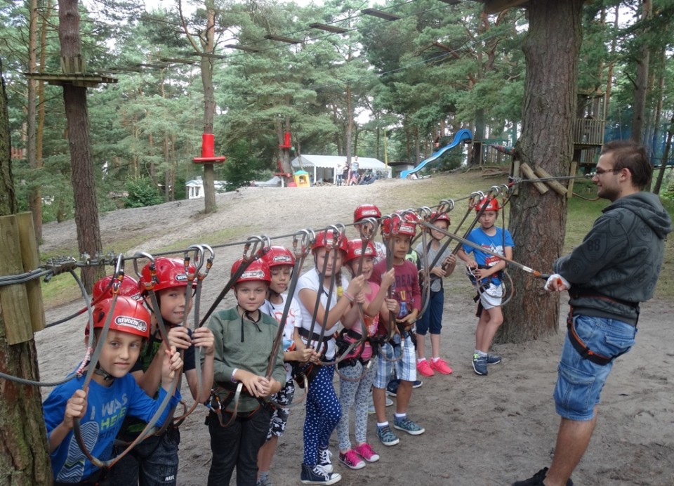 Młodzi wczasowicze zakwaterowani zostali w malowniczo położonym Ośrodku Wczasowo Rekreacyjnym „Manta” w Pogorzelicy. Tam w okresie od 15.07 do 25.07.2017 r., wśród wysokich drzew sosnowego lasu w cichej i spokojnej okolicy, korzystając z przychylności pogody, realizowali bogaty program zajęć. Oprócz plażowania, kąpieli morskich, tradycyjnych zabaw, meczów piłki nożnej i siatkówki, mieli oni okazję sprawdzić się na ściance wspinaczkowej, pokonać trasę parku linowego, pochodzić po taśmie /slackline/ oraz pograć na plaży w rugby. Jak na klub sportów walki przystało, nie zabrakło treningów Oyama Karate na piaszczystej plaży i w morskich falach.