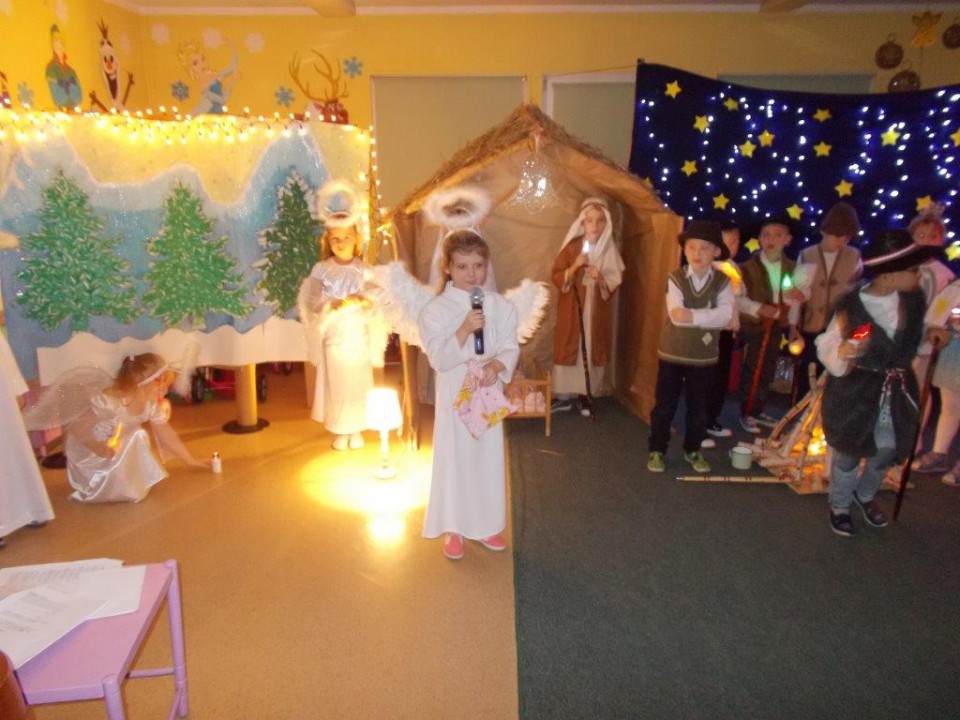 W tym miejscu dziękuje wszystkim osobom zaangażowanym w przygotowanie jasełek, w szczególności Pani Sylwii oraz rodzicom, za wszelką pomoc i zaangażowanie w przygotowanie dzieci do występu. Wszystkim przedszkolakom z grupy IV składam serdeczne gratulacje. Mimo ogromnego stresu zaprezentowali się przepięknie, a ich występ można będzie jeszcze raz podziwiać 7 stycznia w kościele św. Bogumiła, gdzie dzieci powtórzą swoje jasełka. Serdecznie zapraszamy.