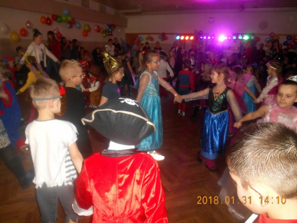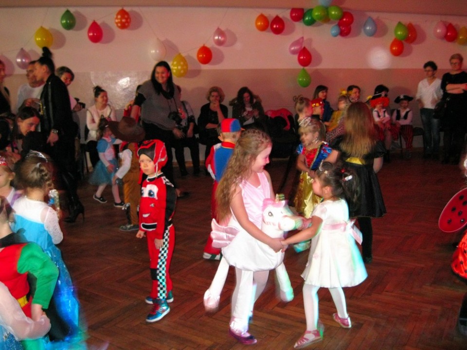 Do wspólnej zabawy wszystkich przedszkolaków zaprosiła dyrektor PM 5 pani Agnieszka Kozajda oraz tworzący oprawę muzyczną balu artyści Muzycznej Agencji Artystycznej ART-Es w osobach pani Ewy Szymkiewicz i pan Sławomira Bartkiewicza. Trzeba dodać ,że muzycy w klimat karnawału wprowadzili najmłodszych już nieco wcześniej. Za sprawą pani Ewy i pana Sławka, przedszkolaki bawiły się bowiem na mini balu w przedszkolu zorganizowanym w ramach cyklicznych spotkań z muzyką. Dzięki temu, maluszki z grupy 3 latków oraz wszystkie pozostałe przedszkolaki mogły oswoić się z głośniejszymi dźwiękami, poczuć smak zabawy w dużej grupie. Kiedy więc przyszła pora na wielki bal w sali Spółdzielni Mieszkaniowej w Kole, chętnych do tańców, pląsów i zabaw z rodzicami nie brakowało.
