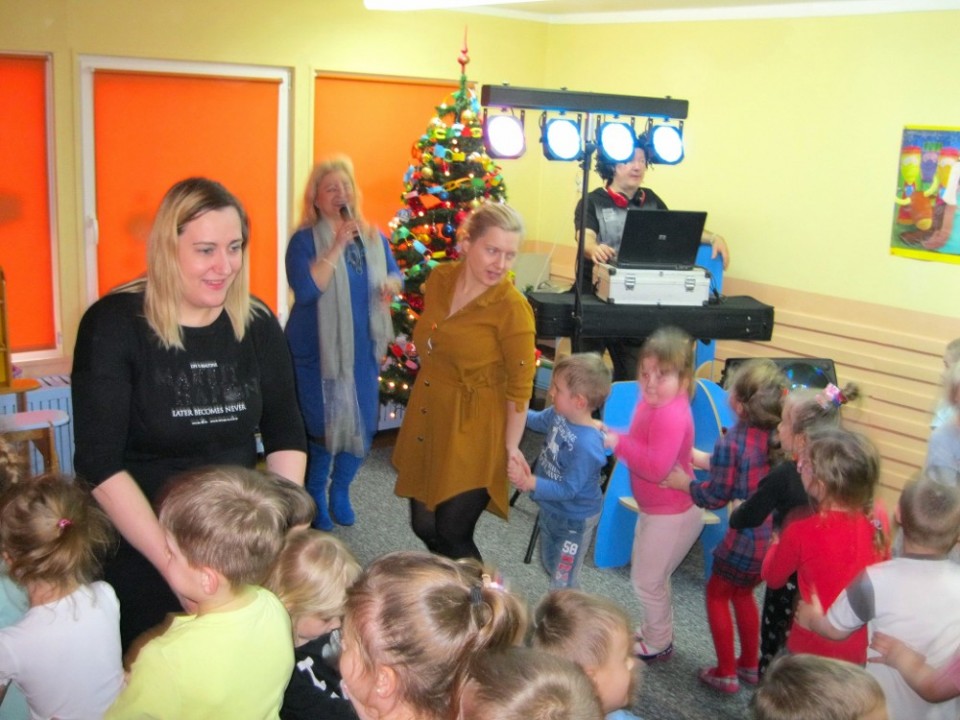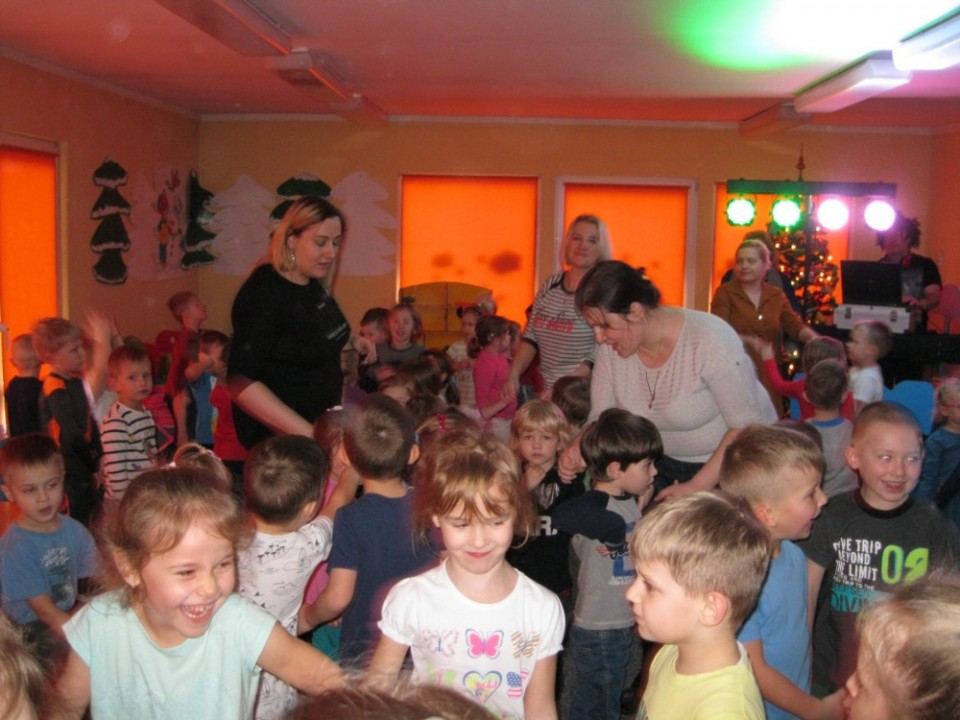 Z wielkim aplauzem przedszkolaki przyjęły też wiadomość o czekających na nie upominkach od Mikołaja. Dla spragnionych i tych, którzy w trakcie imprezy nieco osłabli z sił, czekały przekąski, napoje i owoce. Cytrusy, zafundowała przedszkolakom Hurtownia Kaczmarek , ciasto firma Kostańscy, a słodycze na rzez Gromadki Misia Uszatka przekazał Sklep Spożywczy pani Danuty Wiśniewskiej.