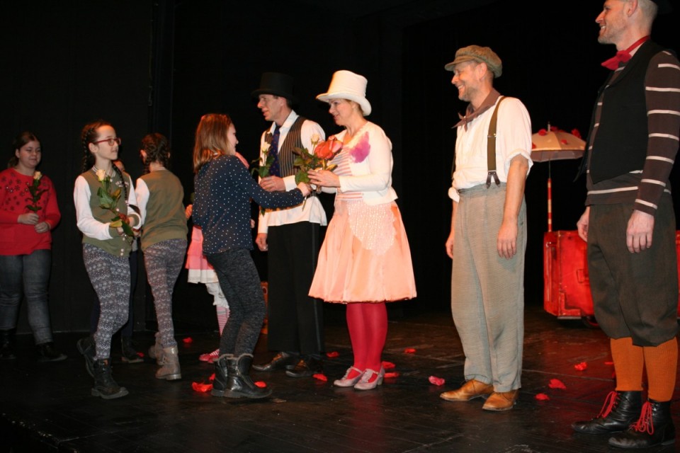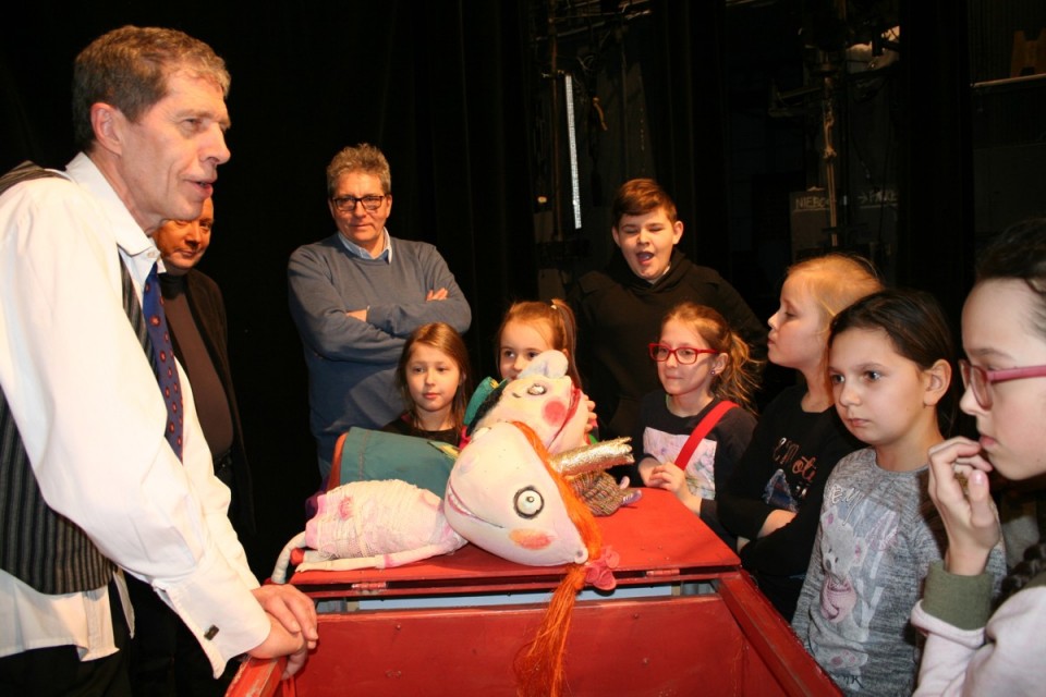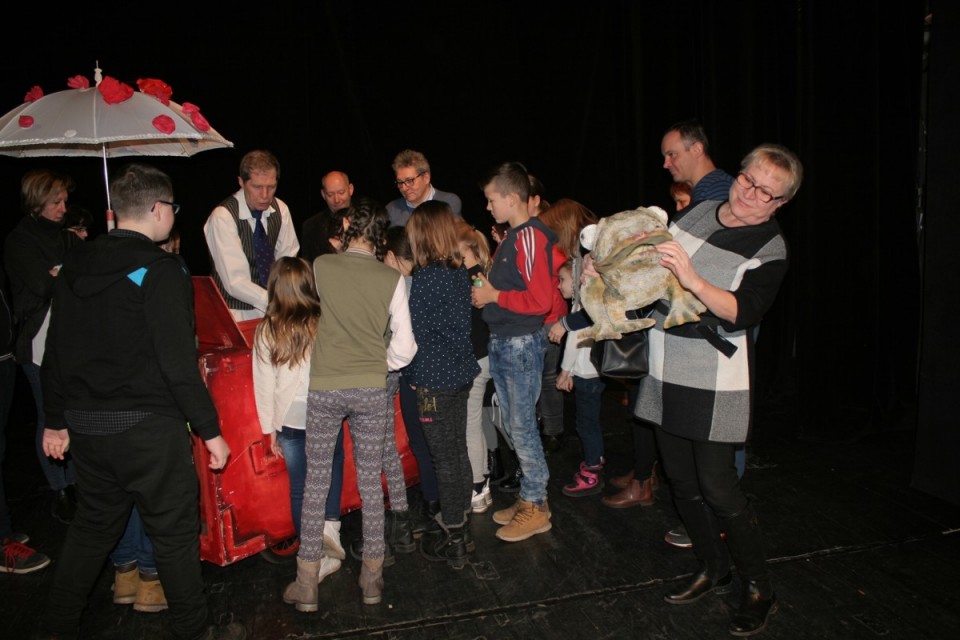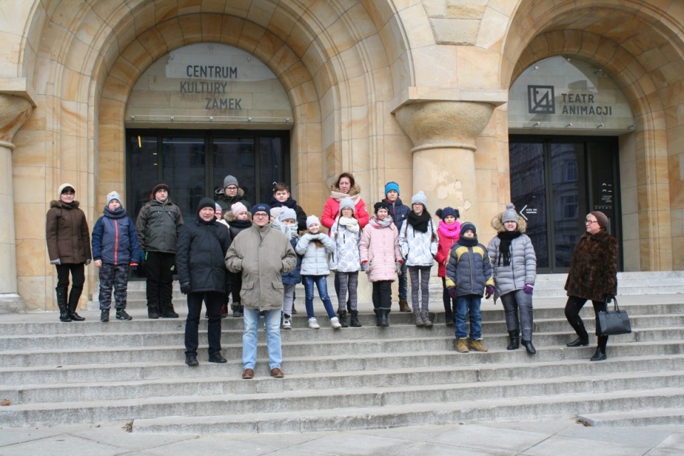 Po niemal trzygodzinnej podróży autokarem 23-osobowa grupa dzieci wraz z opiekunami dotarła do teatru w CK Zamek. Tu już czekał na młodych kolan zaprzyjaźniony z nimi od wielu lat aktor, kolanin, Piotr Grabowski. Wszystkich urzekła gra aktorów odtwarzających znaną baśń Braci Grimm. Zabawa była przednia, więc tuż po spektaklu młodzi kolanie obdarowali aktorów kwiatami.