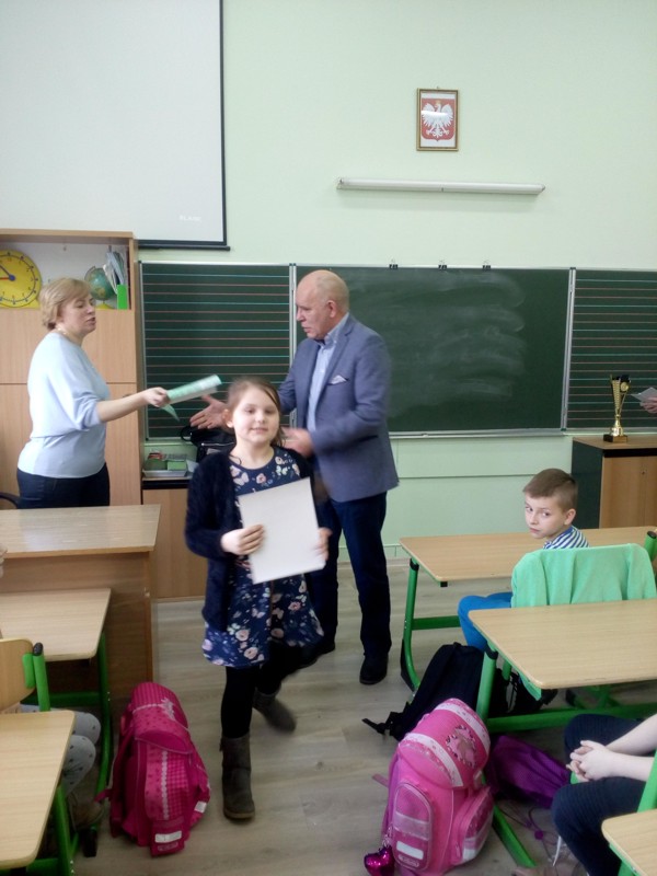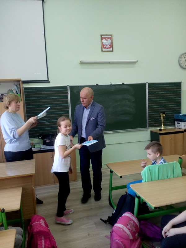 W dniu 01.03.2018 r. zostały wręczone nagrody, medale i dyplomy dla wszystkich uczestników konkursu, które wręczył dyrektor szkoły pan Romuald Adamek. Szkolnym koordynatorem Stypendiady była pani Weronika Antkiewicz-Kowalska. Czynny udział w przygotowaniu uczniów miały również wychowawczynie klas pani Weronika Antkiewicz-Kowalska kl 2a, pani Mariola Krygier kl 2b oraz pani Izabela Żurawik kl 2c.