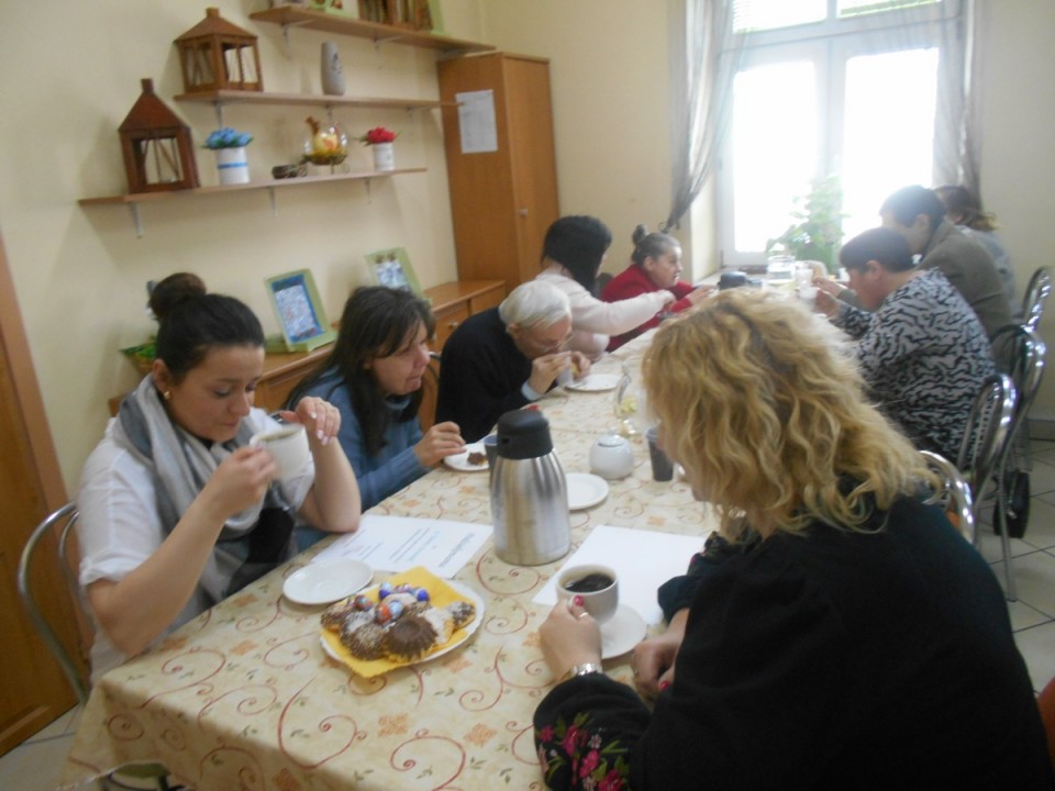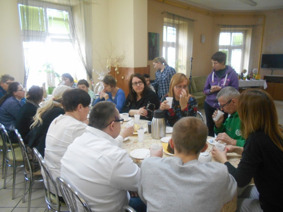 Na zakończenie zaproszono wszystkich na słodki wielkanocny poczęstunek, przygotowany przez uczestników pracowni gospodarstwa domowego ŚDS w Kole.