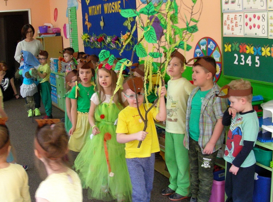 Skowronki, czajki, szpaki i żurawie już są. Wraz z ich szczebiotem, pojawił się powiew radości. W salach przedszkolnych też zmiany, zniknęły zimowe dekoracje. W ogrodach pierwsze kwiaty oznajmiły nadejście wiosny, którą jak co roku najgłośniej witają przedszkolaki.