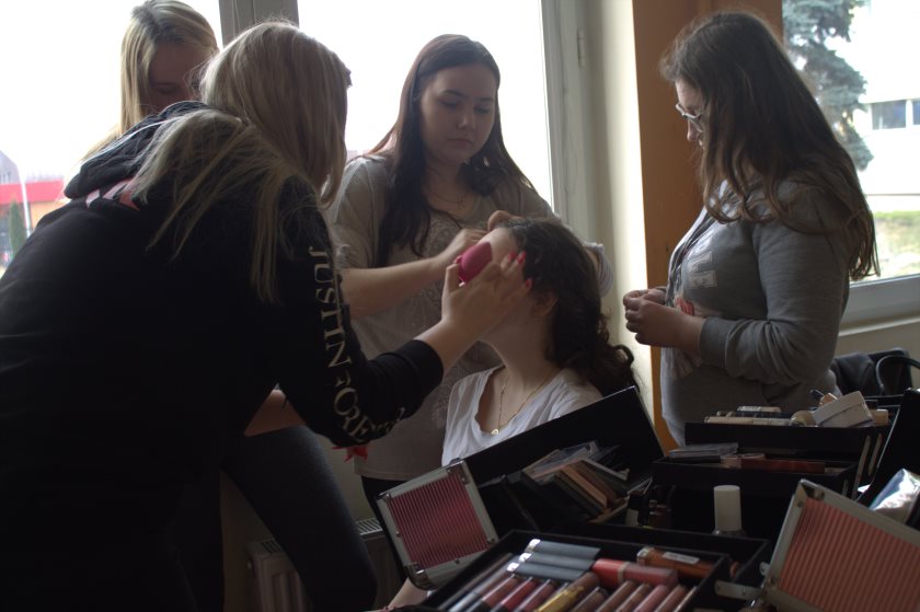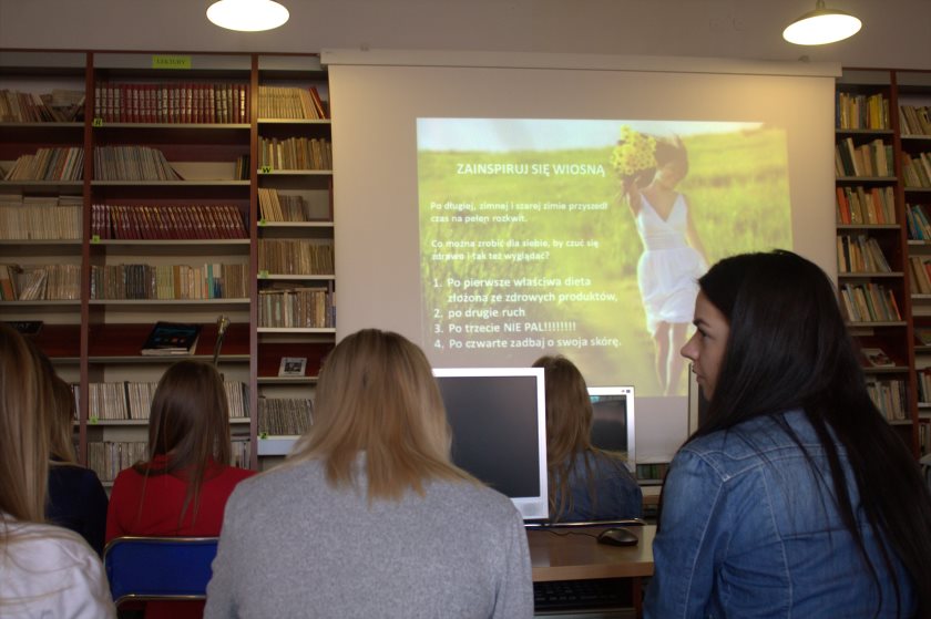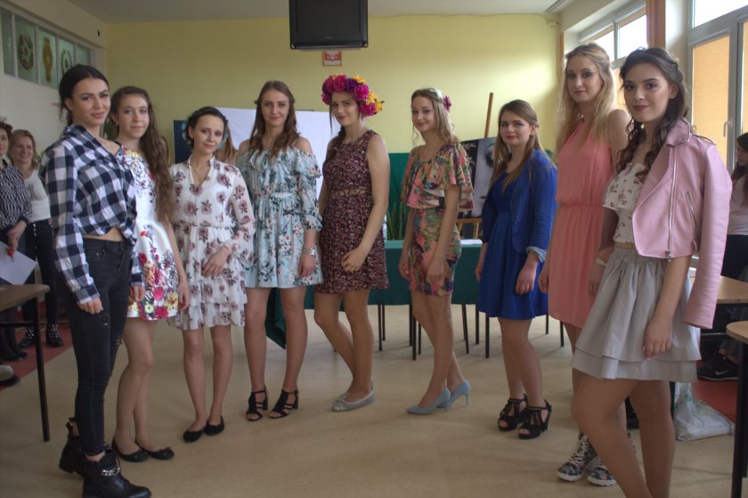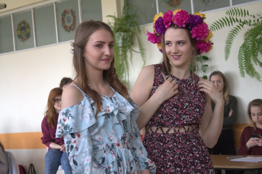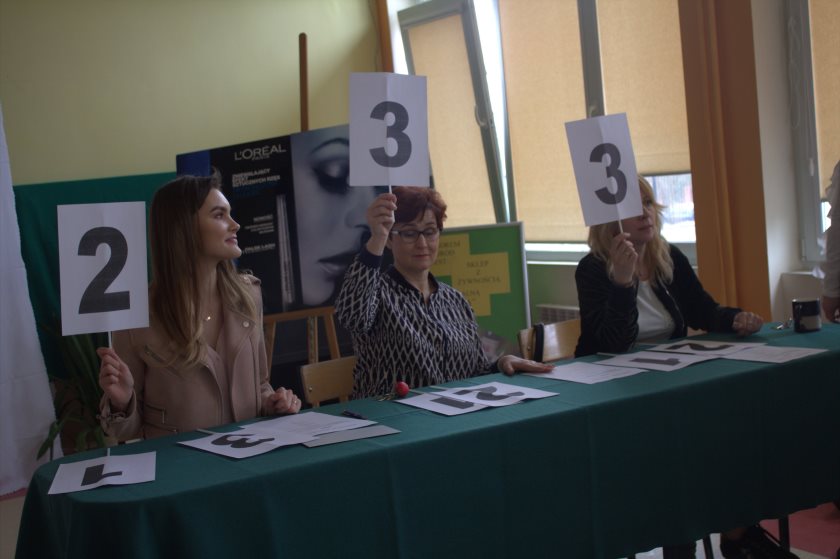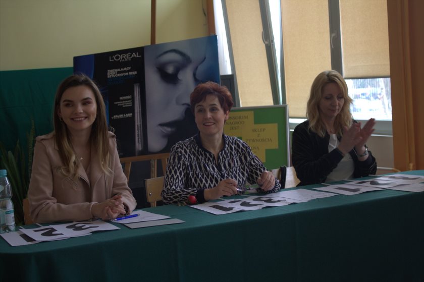 Dziewczyny miały także możliwość wysłuchania wykładu dotyczącego współczesnych trendów stylizacji ubioru. W świat wizażu i stylizacji zostały wprowadzone przez naszą absolwentkę Klaudię Granos. Wizażystka zapoznała uczennice z typami urody, scharakteryzowała „Panią Wiosnę”. Zdobyte informacje dziewczęta wykorzystały w praktyce biorąc udział w konkursie Wiosenne Stylizacje „Zainspiruj się Wiosną”. Zadanie konkursowe polegało na przeprowadzeniu przez grupy dziewczyn wiosennej metamorfozy na jednej z wybranych przez siebie koleżanek. Uczennice wykonywały makijaż i stylizację podkreślające atuty urody wybranych modelek. Efekty pracy oceniło joury w składzie: pani Katarzyna Poronin, pani Klaudia Granos oraz pani Małgorzata Gralak. Wszystkie uczestniczki konkursu zostały nagrodzone kosmetykami ufundowanymi przez Annę Malicką właścicielkę sklepu z Żywnością Naturalną „Zosia” oraz Dyrektora ZST w Kole. Nagrodą specjalną dla najlepiej wystylizowanej modelki wybranej przez młodzież był Voucher ufundowany przez Klaudię Granos na makijaż fotograficzny oraz indywidualną sesję zdjęciową, który zdobyła uczennica 1 klasy zdrowia i urody Andżelika Bartosik.