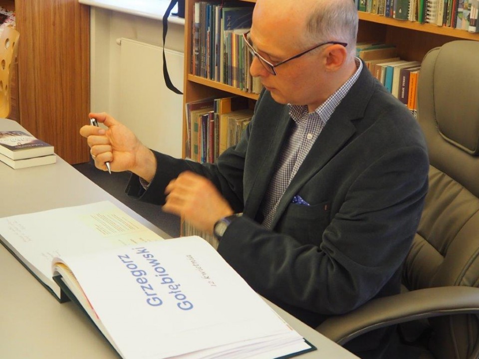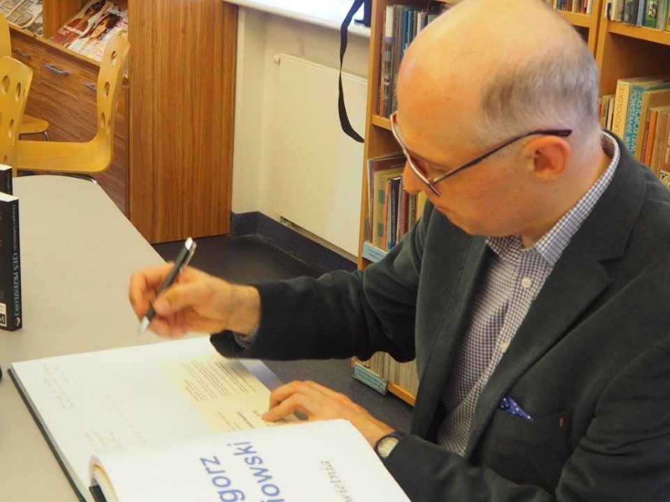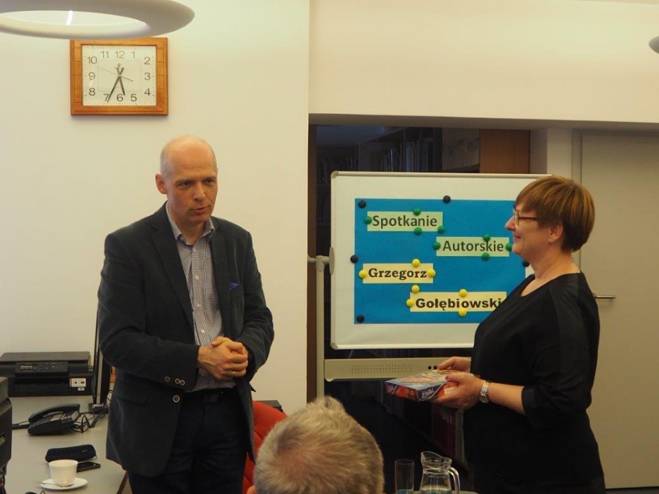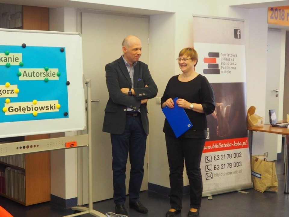 Powiatowa i Miejska Biblioteka Publiczna w Kole gościła Grzegorza Gołębiowskiego (12.04.), ekonomistę, doktora habilitowanego nauk ekonomicznych, nauczyciela akademickiego, pisarza. W tej ostatnie roli spotkał się z czytelnikami - książnicy kolskiej - promując książkę ,,Cień przeszłości”.