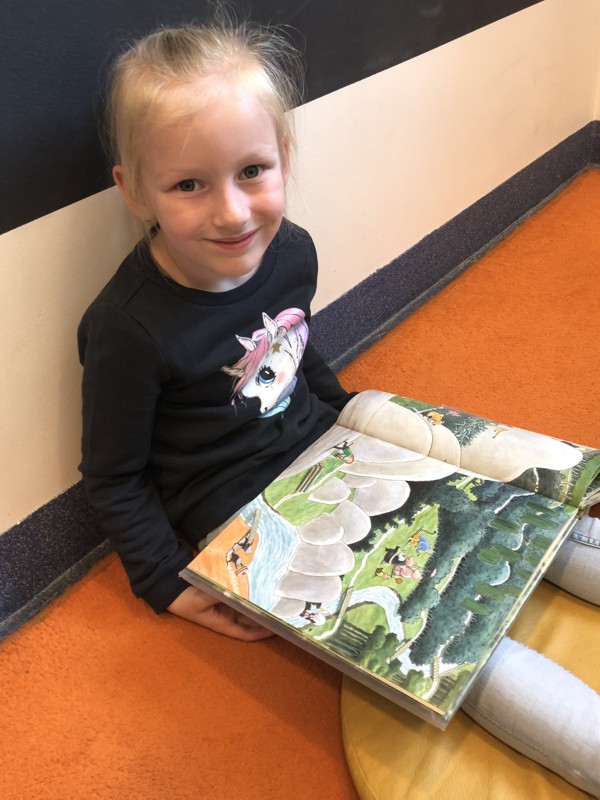Pani Anna Pietruszka wprowadziła nasze przedszkolaki w kolorowy świat książek dla najmłodszych. Mieliśmy okazję nie tylko posłuchać pięknej opowieści, zabawić się w ilustratorów, ale przede wszystkim miło spędzić czas i dowiedzieć się jakie skarby skrywa nasza kolska biblioteka.