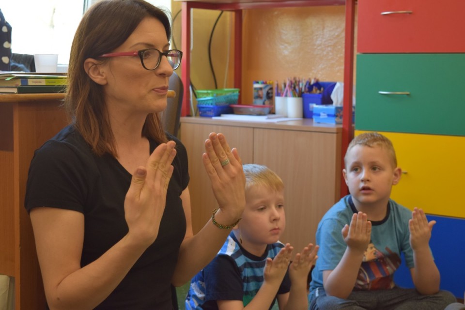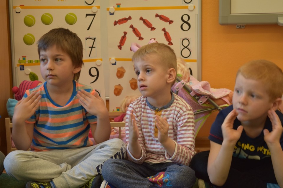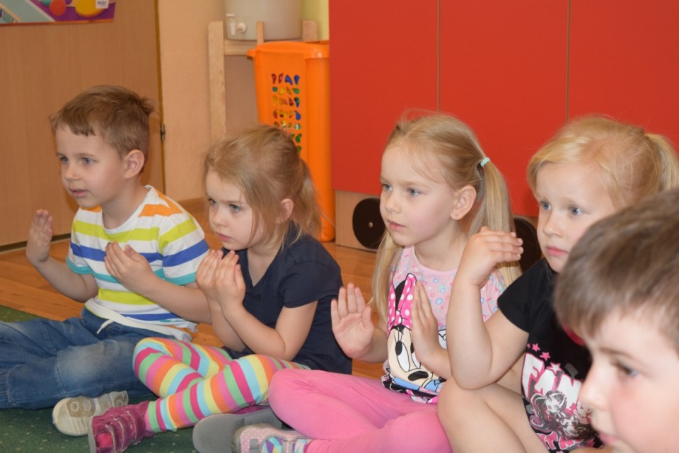 Podczas ciekawych i zabawnych zajęć przedszkolaki nauczyły się, jak za pomocą języka migowego wyrazić kolory oraz zwroty grzecznościowe. Dziękujemy za wizytę i mile spędzony czas.
