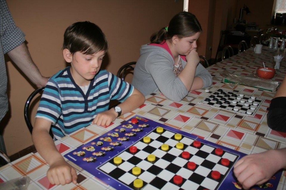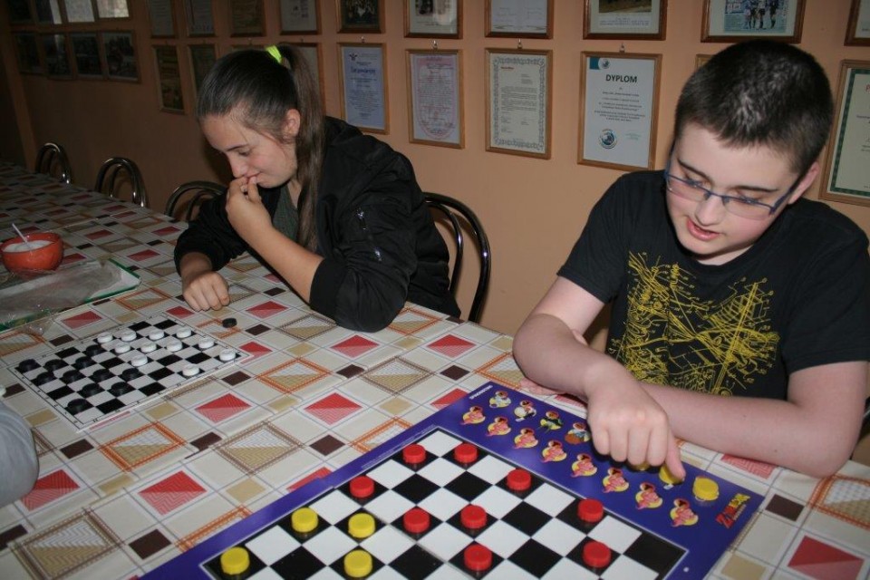 1 maja w godzinach dopołudniowych w klubowej świetlicy przy ul. Pułaskiego 8 grupa młodych mieszkańców miasta Koła rywalizowała pomiędzy sobą w rozgrywkach w warcaby. W kategorii chłopców z 12 pkt zwyciężył Emanuel Szadkowski przed Jasiem Wasilewskim z 5 pkt. W kategorii dziewcząt zwyciężyła z 8 pkt Aneta Zagozda przed Kingą Tyburek uzyskała ona 7 pkt. Swoich sił w grze w warcaby spróbowały również i panie. Z 6 pkt zwyciężyła Małgorzata Stężewska przed Ireną Tyburek – z 5 pkt. Trzecie miejsce wywalczyła z 4 pkt Alina Szadkowska natomiast czwartą z 3 pkt została Maria Grzebielucha. W nagrodę uczestnicy zmagań w warcaby obdarowani zostali kaneczkami do mleka pełnymi słodyczy. Były również pączki, herbata oraz tradycyjnie czekolada.
