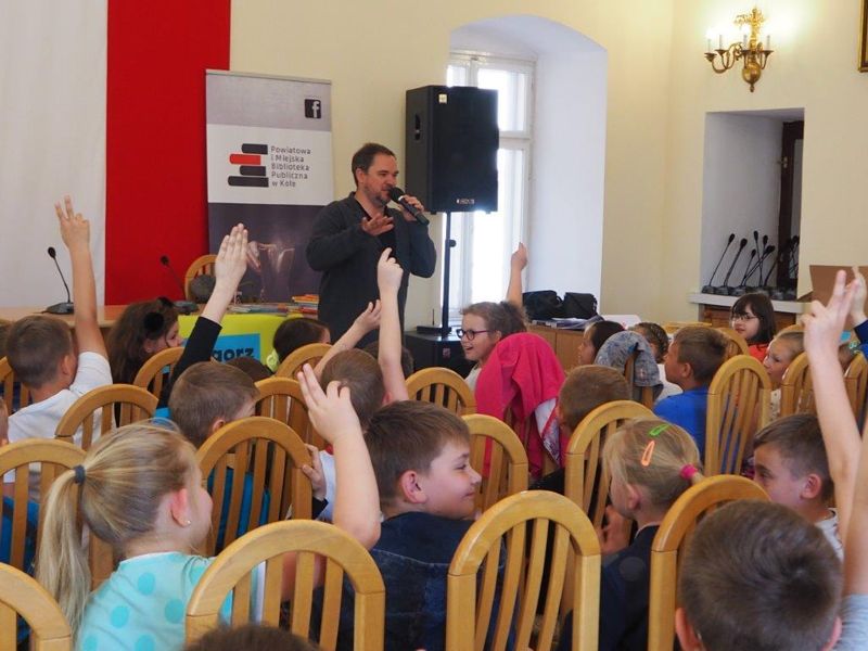 Filia dla Dzieci Powiatowej i Miejskiej Biblioteki Publicznej w Kole gościła niekwestionowanego króla literatury dziecięcej - Grzegorza Kasdepke (07.05.). W spotkaniu, które odbyło się w Ratuszu, udział wzięło 70 uczniów ze Szkół Podstawowych: nr 1, 2, 3, 4 w Kole.