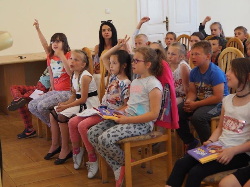 Ponadto dzieci przeprowadziły z pisarzem „konferencję prasową”, zadając mu niebanalne i zabawne pytania.