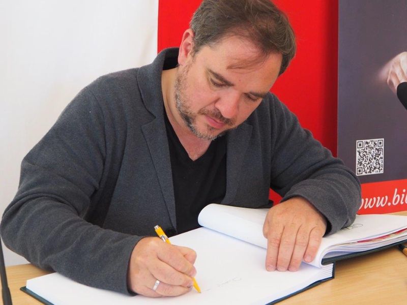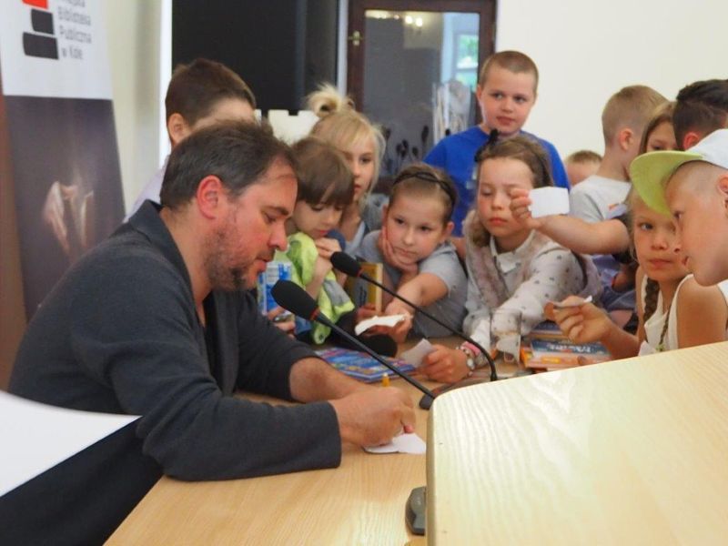 Na zakończenie autor składał autografy w zakupionych przez dzieci książkach.