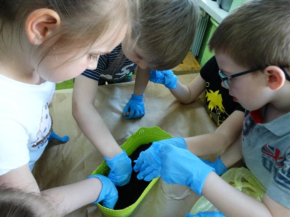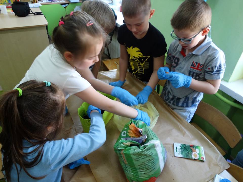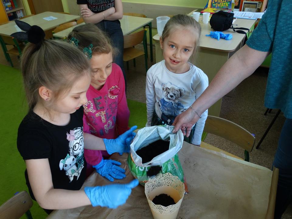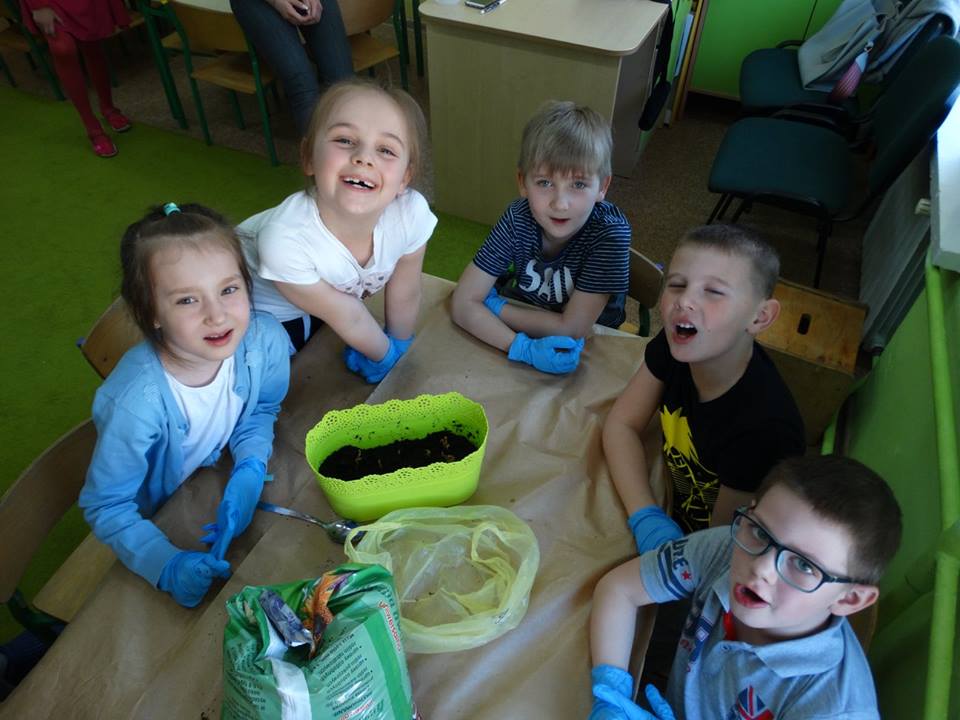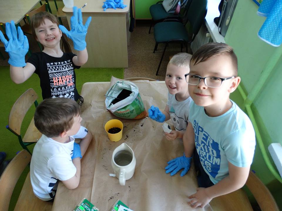 Dzieci z grupy IV od marca do maja realizowały projekt edukacyjny „Wiosenny ogródek”. Jego celem było rozbudzanie potrzeby kontaktu z przyrodą, uświadomienie znaczenia i piękna otaczającego środowiska naturalnego oraz poznanie podstawowych zasad siania i sadzenia roślin.