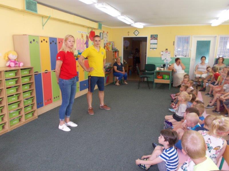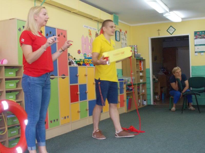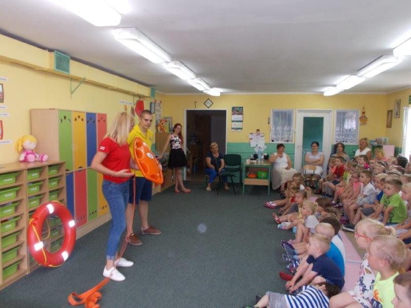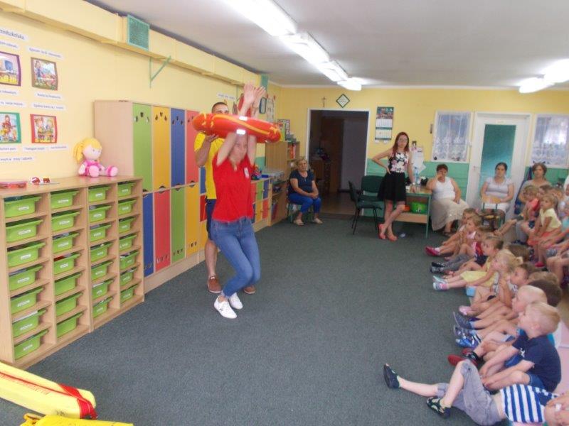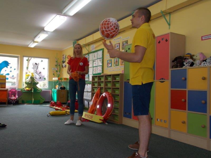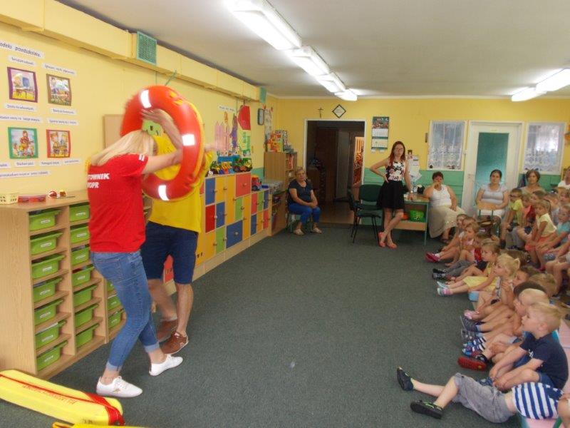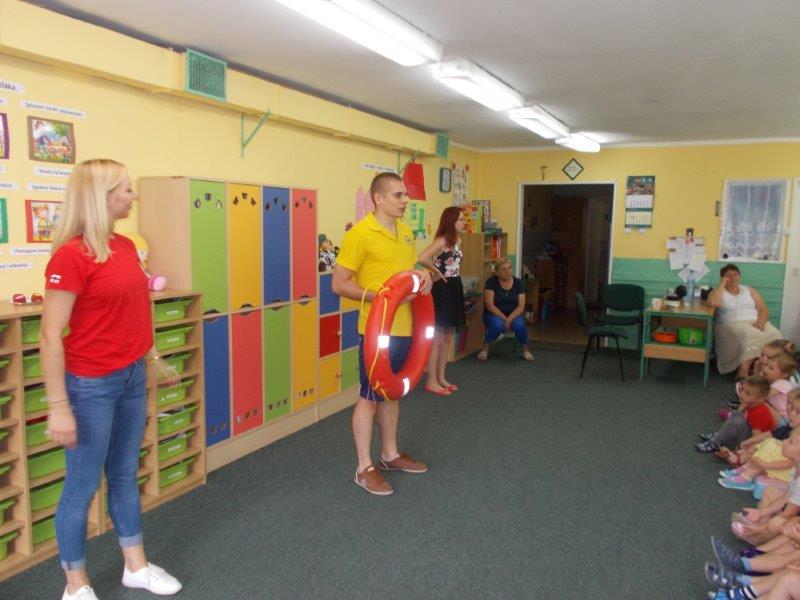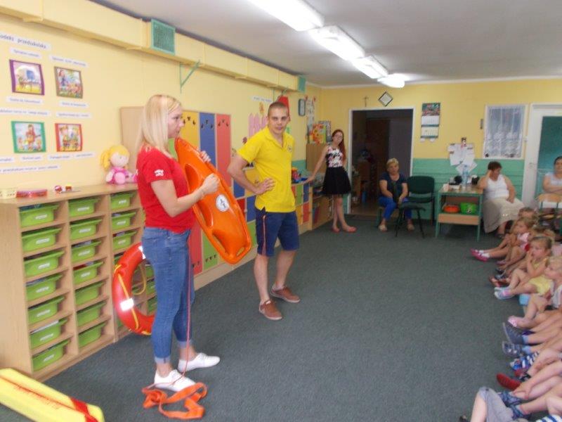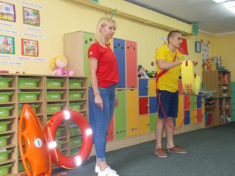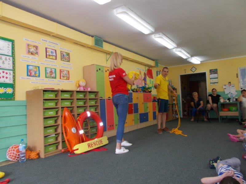 5 czerwca 2018 r. nasze przedszkole odwiedzili ratownicy z Wodnego Ochotniczego Pogotowia Ratunkowego w Kole: Pani Żaneta Czerniejewska oraz Pan Eryk Tomaszewski. Nasi goście przeprowadzili ciekawe zajęcia z mnóstwem rekwizytów na temat bezpiecznego wypoczynku nad wodą. Był to temat bardzo ważny i aktualny gdyż wielkimi krokami zbliżają się wakacje, a wraz z nimi wypoczynek i kąpiele nad jeziorami i morzami.