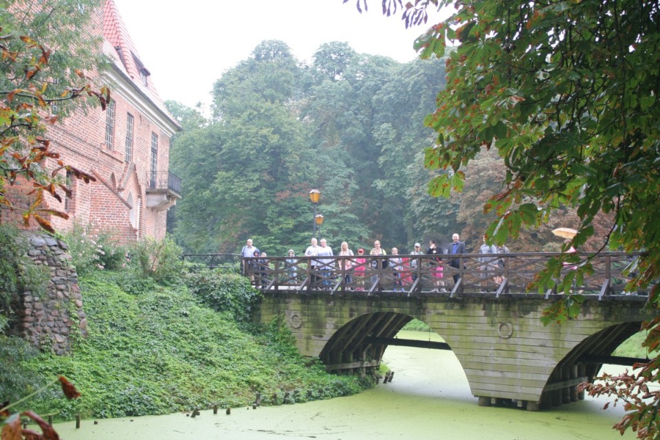 Z Koła wyruszyliśmy mini autokarem w kierunku Kutna. Około godziny 10-tej byliśmy już pod zamkową bramą w Oporowie, gdzie przywitał nas sam jego kusztosz Andrzej Borucki. Pomimo drobnego ale nagłego i dokuczliwego deszczu, kustosz zaproponował nam jednak, byśmy obeszli wokół zamkową fosę, nad którą majestatycznie górował ceglasty zamek, siedziba rodowa Oporowskich herbu Sulima. W trakcie wędrówki wokół zamku opowiedział nam jego ciekawą historię i wspomniał jego dawnych właścicieli.