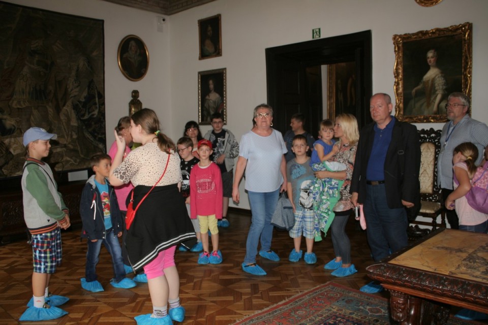 Już w samych zamkowych murach zwiedziliśmy kolejno: komnaty bogate w dawne sprzed wielu wieków zabytkowe zbroje, obrazy, wystroje wnętrz i wiele innych ciekawych ekspozycji muzealnych. Pytań grupa zadawała przewodnikowi wiele, a było o co pytać, gdyż zamek ten pobudowany w XV wieku nie był w ogóle zniszczony i zachował się w oryginalnym stanie do naszych czasów.
