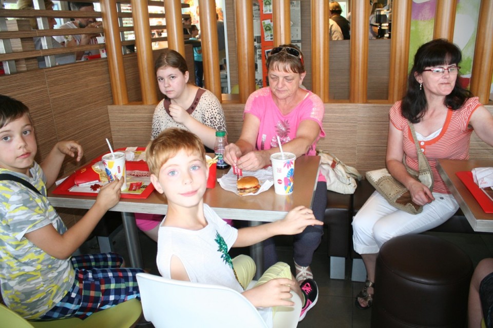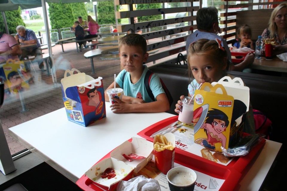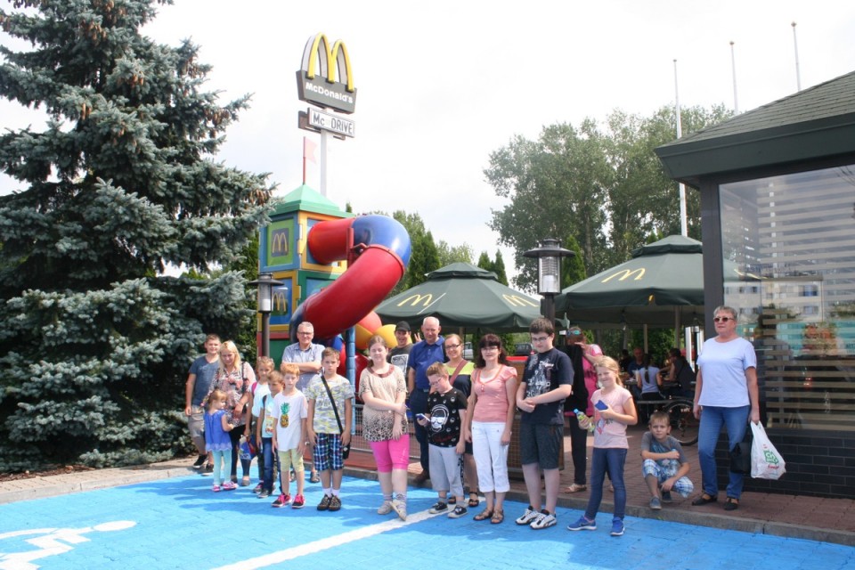 Humory wszystkim się poprawiły, gdy deszcz przestał padać i pojawiło się słońce. Miłą wyprawę zakończyły wspólne fotografie. Będzie pamiątka z wyjazdu. Obowiązkowo zatrzymaliśmy się przy McDonaldzie, czym sprawiliśmy dzieciakom wielką frajdę. Żal było się rozstawać, ale uczestnicy tej wyprawy zostali zaproszeni na kolejną, za miesiąc, do Biskupina. Kierownikiem grupy był dyrektor kolskiego muzeum Tomasz Nuszkiewicz.