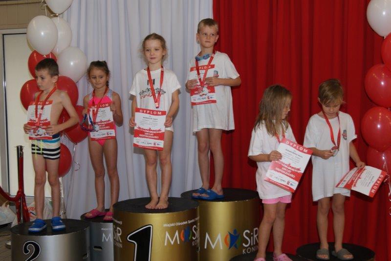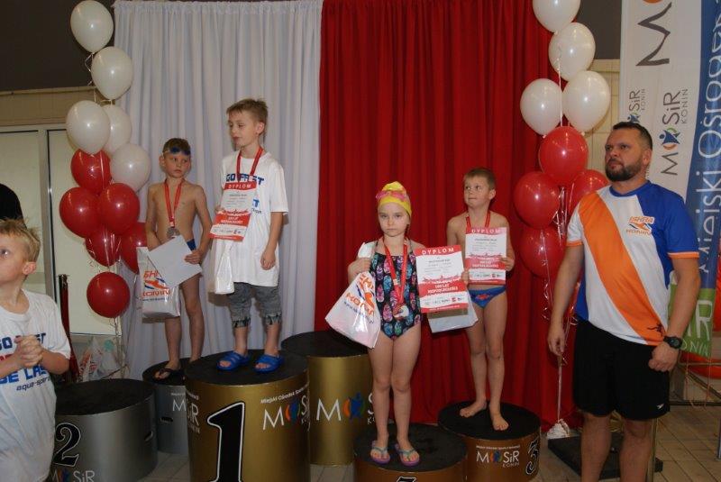Po konińskiej rywalizacji na koncie kolskiego klubu pojawiło się kolejne 20 medali: 5 złotych, 8 srebrnych i 7 brązowych. Ostatnie zdobycze spowodowały, że od listopada 2016 r. , czyli dnia pierwszego udziału w zawodach dzieci i młodzieży z HURAGANU, podopieczni klubu zdobyli już przeszło 100 medali! W styczniu 2019 minie rok, odkąd klub rozpoczął działalność na kolskiej pływalni, ale w listopadzie bieżącego roku zaledwie dwa lata od pierwszych startów. Zatem sukcesy naszych młodych pływaków są imponujące.