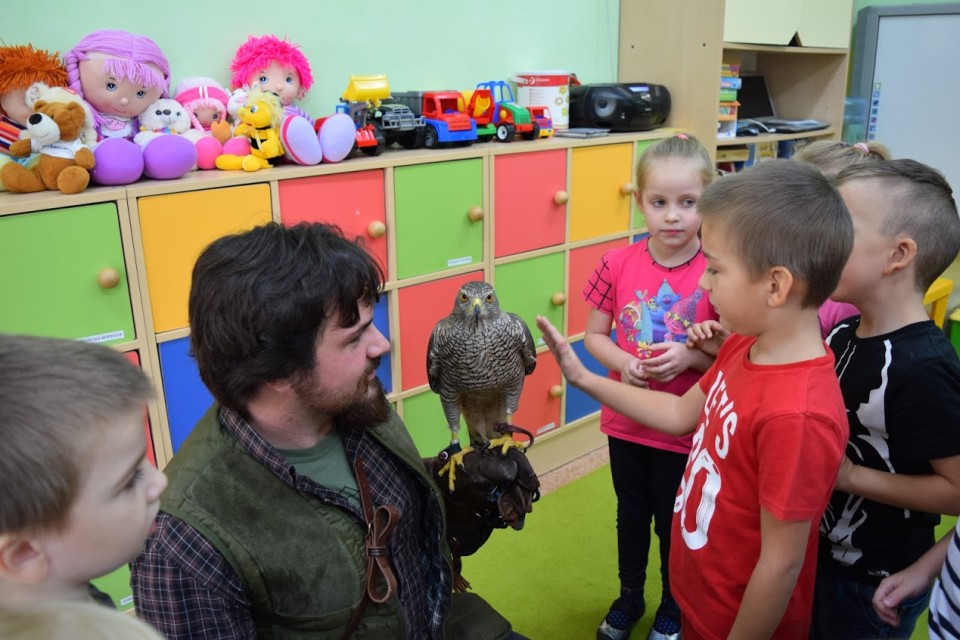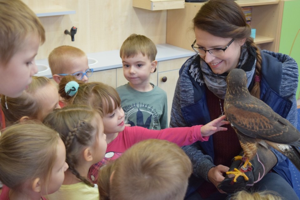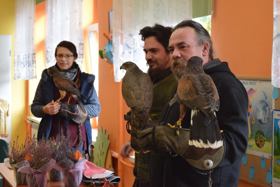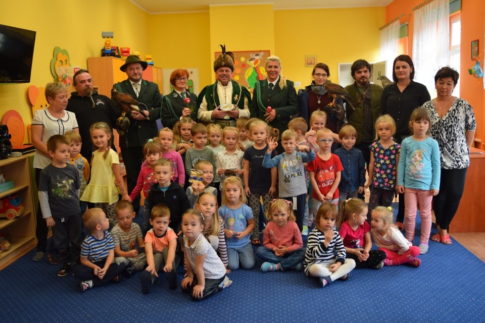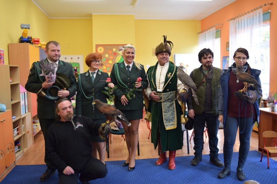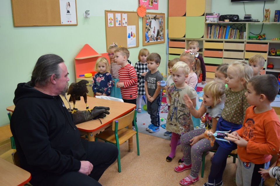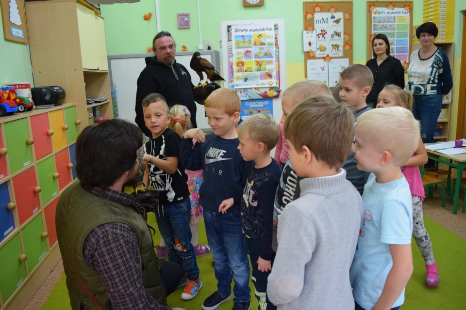 26 października odwiedzili Nasze przedszkole niezwykli goście- myśliwi i sokolnicy. Podczas spotkania opowiedzieli o swojej pracy, zwierzętach zamieszkujących lasy oraz przekazali wiele ciekawych informacji na temat hodowli, upodobań, diety i ochrony ptaków drapieżnych. W pokazie brały udział: jastrząb i myszołowy. Te niezwykłe ptaki prezentowały się dumnie na rękawicy sokolników, dzięki czemu dzieci mogły się im przyjrzeć z bliska i pogłaskać.