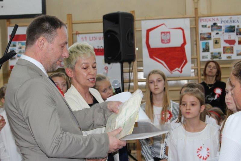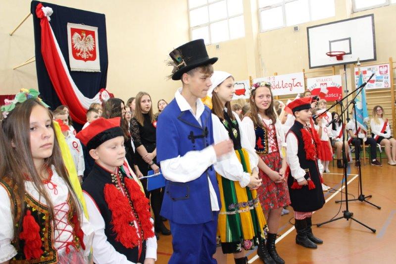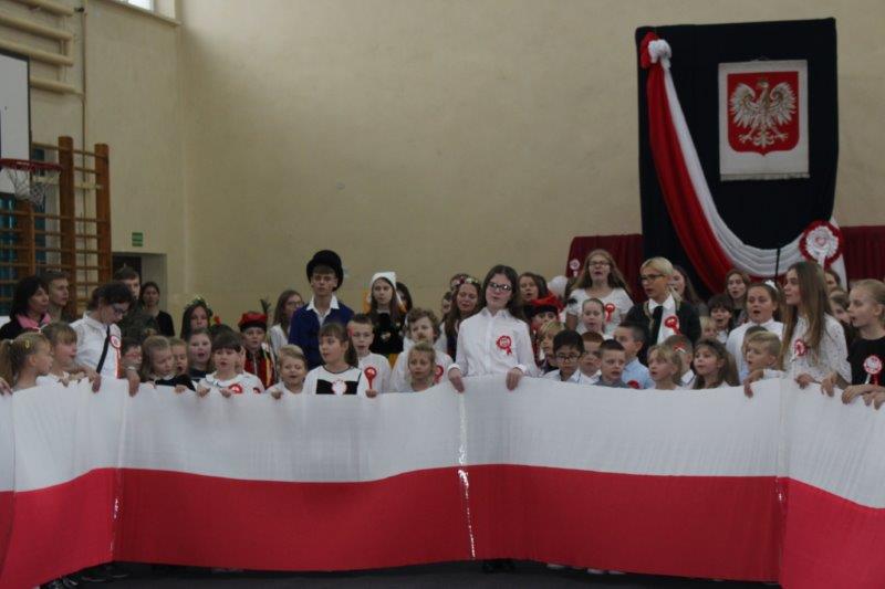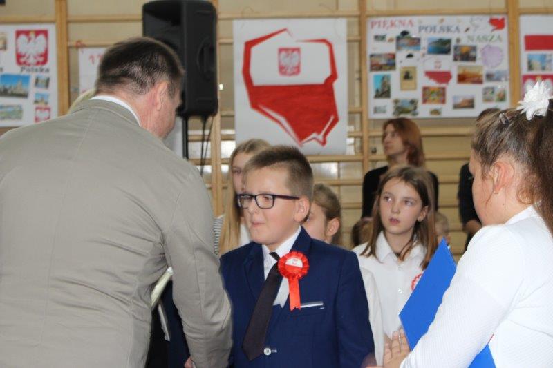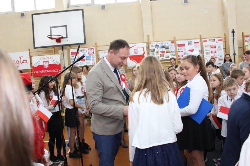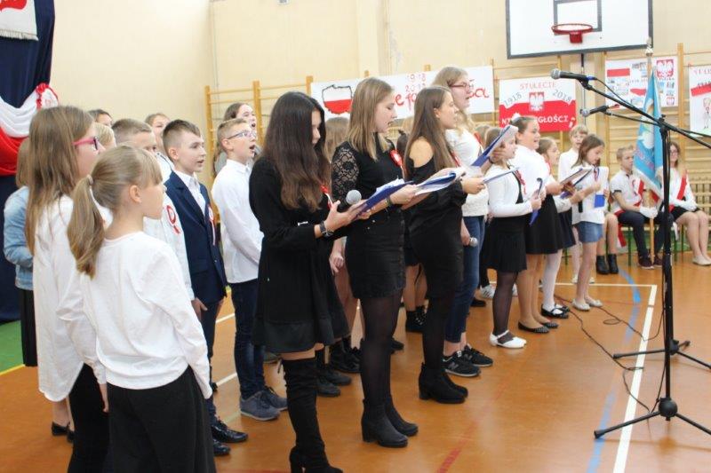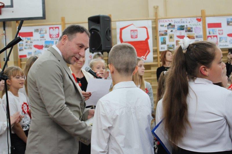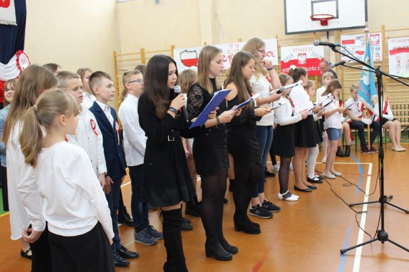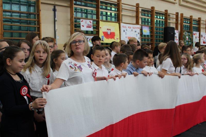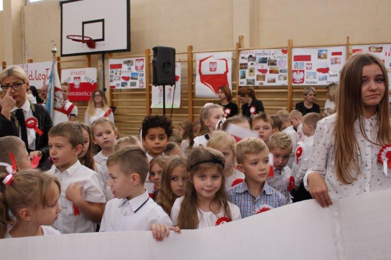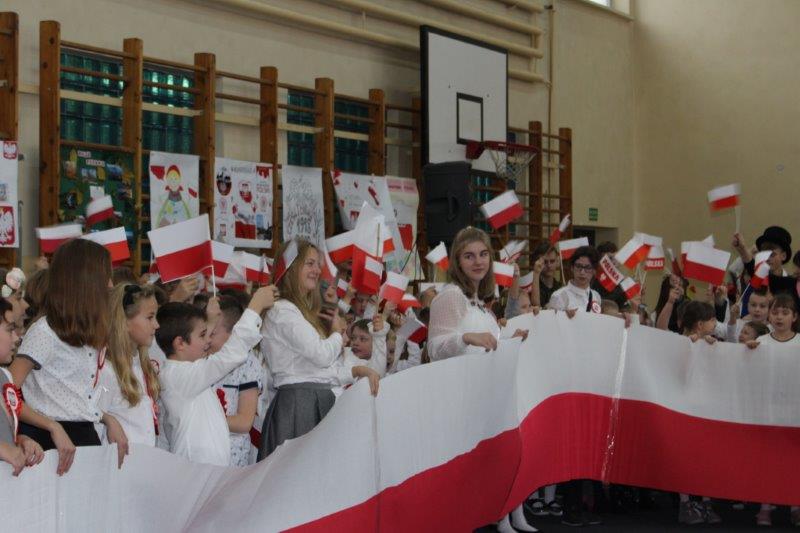 Dostojnie dziś wyglądała kolska "piątka". Także uczniowie przywdziali dziś galowe stroje i przypięli do piersi kotyliony. Wszak świętowanie 100. rocznicy odzyskania niepodległości to wielkie wydarzenie. Patriotyczne święto skłania nas do refleksji nad wartością wolności i niepodległości stanowiącymi istotny składnik narodowej tożsamości. W duchu radości utrzymany był apel, jaki staraniem grona pedagogicznego wystawili uczniowie dla swych koleżanek i kolegów. Była inscenizacja, recytacja, informacje historyczne, śpiew i muzyka. Punktualnie o godz. 11.11 uczniowie, rozwijając wielką flagę państwową, zaśpiewali hymn. Zwieńczeniem miłego spotkania było wręczenie nagród finalistom konkursów, zorganizowanych pod szyldem rocznicy odzyskania niepodległości.
