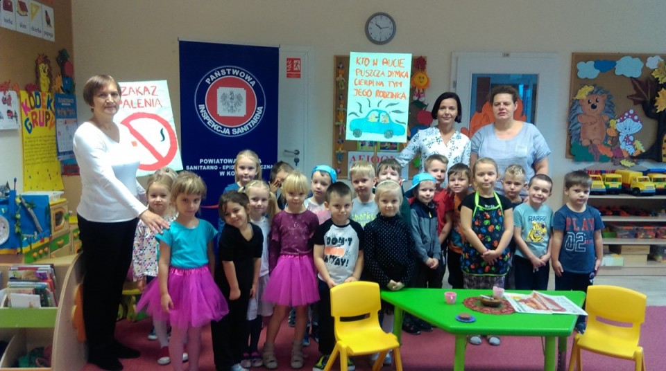 W ramach obchodów Światowego Dnia Rzucania Palenia pracownik Oświaty Zdrowotnej i Promocji Zdrowia w Powiatowej Stacji Sanitarno – Epidemiologicznej w Kole przeprowadził zajęcia edukacyjne z profilaktyki antynikotynowej w Przedszkolu Miejskim Nr 1 w Kole. Zajęcia te wpisały się w realizowany przez Przedszkole Miejskie Nr 6 Program „Czyste powietrze wokół nas”. Podczas zajęć z dziećmi omawiane były treści, które dotyczą nie tylko szkodliwości palenia tytoniu i biernego narażenia na dym tytoniowy, ale również dają przykłady radzenia sobie w sytuacjach, kiedy dorośli palą przy dzieciach tytoń. Dzieci na podstawie przeczytanej przez pracownika Powiatowej Stacji Sanitarno-Epidemiologicznej bajki pt: „Dymiące smoki” wymieniły ujemne skutki zdrowotne palenia papierosów.