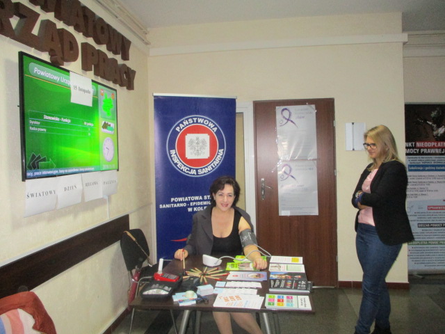 W dniu 15 listopada na terenie Powiatowego Urzędu Pracy w Kole zorganizowano punkt informacyjno-edukacyjnego, w którym pracownicy Powiatowej Stacji Sanitarno -Epidemiologicznej w Kole udzielali informacji n/t szkodliwości palenia tytoniu i wykonywali badania zawartości tlenku węgla w wydychanym powietrzu przy użyciu smokerlyzera oraz badania ciśnienia krwi, które cieszyły się dużym powodzeniem.